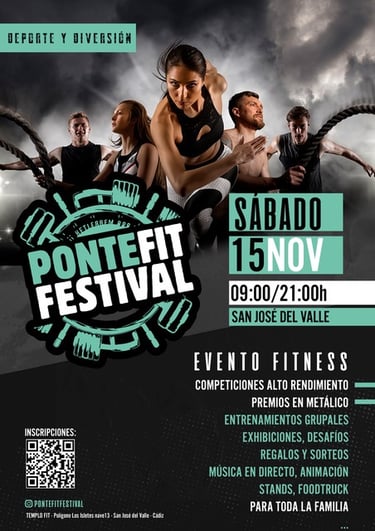 Ponte Fit Festival es un evento deportivo diseñado para toda la comunidad fitness. Independientemente de su nivel de preparación física, todas las personas que disfruten del entrenamiento en comunidad podrán participar en una jornada que aúna gran variedad de actividades: entrenamientos grupales, competiciones de alto rendimiento, talleres, exhibiciones, desafíos de fuerza y resistencia y exhibiciones de alto nivel.
